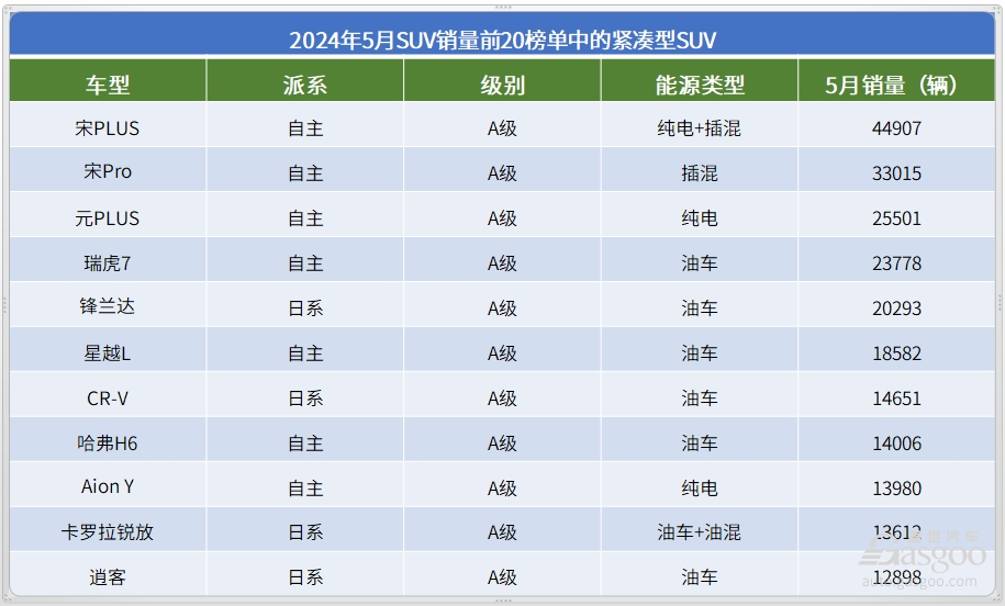 紧凑级SUV市场也已经一边倒的被自主车型引领了。5月进入到SUV销量前20榜单的紧凑级车共有11款,其中7款是自主产品。比亚迪在紧凑级SUV市场上的地位堪称超然,宋PLUS、宋Pro再加上元PLUS,都是比亚迪旗下的 “王牌”车型,三款车就贡献了超12万辆的月度销量。