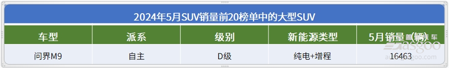 大型SUV市场:问界M9继续领跑