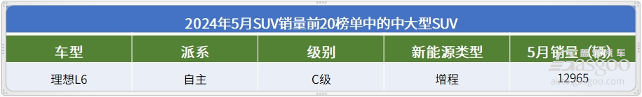 5月,理想L6是唯一一款进入到SUV销量前20榜单的中大型SUV。细分市场上,问界M7的表现也可圈可点,5月继续交出破万的月销量,紧随理想L6之后,是国内中大型SUV市场上销量第二高的车型。理想L7的5月销量接近万辆,排在细分市场的第三名。