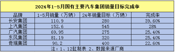 首先以几大国有主要汽车集团来说,长安汽车表现最好,1-5月的累计销量超过了110万辆,而其全年销量目标为280万辆,目标完成率达39.6%。