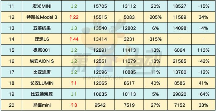理想L6初露锋芒,首次上榜跻身第14,熊猫mini再次上榜,而曾经的大热车型问界M7以及元UP落榜。