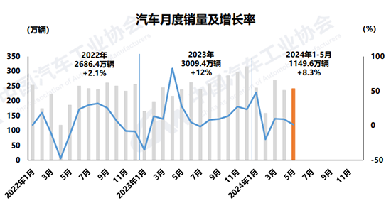 5月,我国汽车产销分别完成237.2万辆和241.7万辆,同比分别增长1.7%和1.5%。中汽协副秘书长陈士华表示,我国经济总体产出继续扩张,企业生产经营活动保持恢复发展态势;加之近期汽车市场利好政策不断,充分释放消费潜力,5月汽车产销同比实现小幅增长。