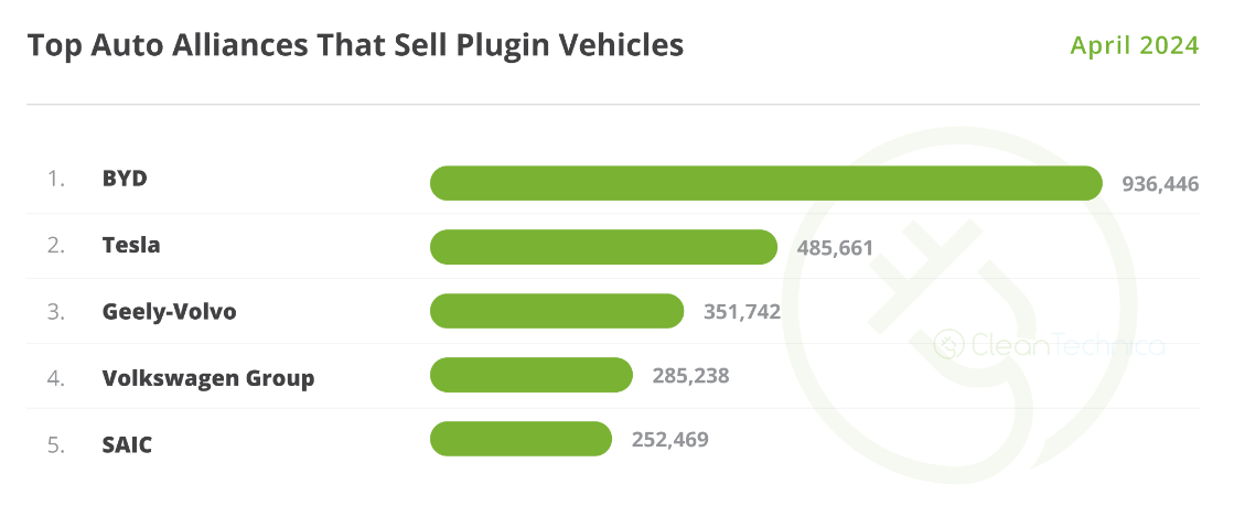 汽车集团的电动车销量;图片来源:CleanTechnica