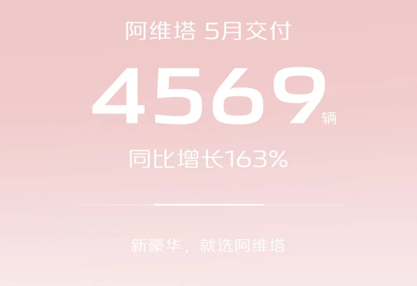 阿维塔5月交付数据表现亮眼。5月阿维塔共交付新车4569辆,同比增长163%,环比降低12.92%。今年1-5月累计交付新车24348辆。