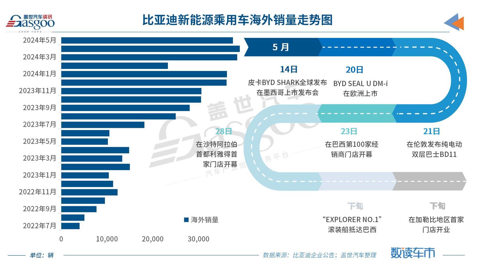 在此背景下,5月份比亚迪海外新能源乘用车销量累计完成37,499辆,自2022年7月比亚迪公布数据至今,其海外新能源乘用车销量已逼近47万辆,其中2024年1-4月累计销量就已突破逼近18万辆。