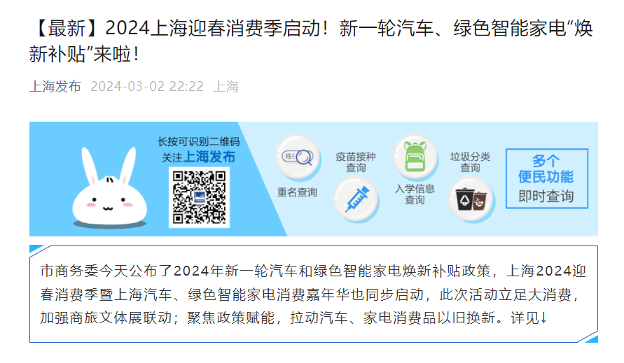 该机构表示,春节后是新品推出的重要时间点,很多厂商的新车大量推出,在国家促消费政策推动下,很多省市出台了相应促消费政策,车展等线下活动的全面恢复也将加速聚拢人气。