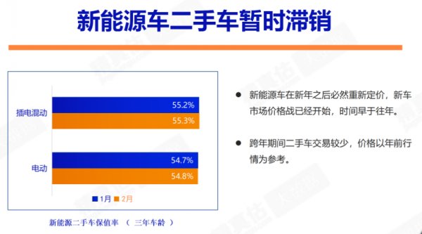 2月下旬,二手车市场开始逐渐受到新车市场价格战影响,其中新能源二手车在政策和价格两方面的不确定性使车商更加担忧。流通协会表示,特斯拉、比亚迪两个“龙头”率先官降,新年后保值率进一步下降。目前新能源车市场已经出现恶性竞争苗头,经销商需尽量回避风险。