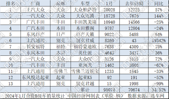 具体来看合资B级普通品牌车型1月的市场表现。以帕萨特、迈腾为代表的“德系双雄”强势开局,分别以20028辆、18728辆的成绩包揽榜单前两名。日系“常青树”凯美瑞、雅阁落入下风,以10940辆、9787辆分列第三、第四位。