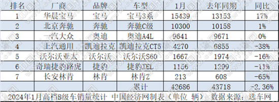 高档B级车方面,宝马3系以15439辆的成绩夺得月度销冠,同比增幅达到17%。奔驰C级、奥迪A4L销量与去年同期基本持平,分别以10300辆、9641辆的成绩落座亚军、季军。整体来看,高档B级车市场“马太效应”凸显,BBA三家上演“强者恒强”戏码,占据市场份额超82%。
