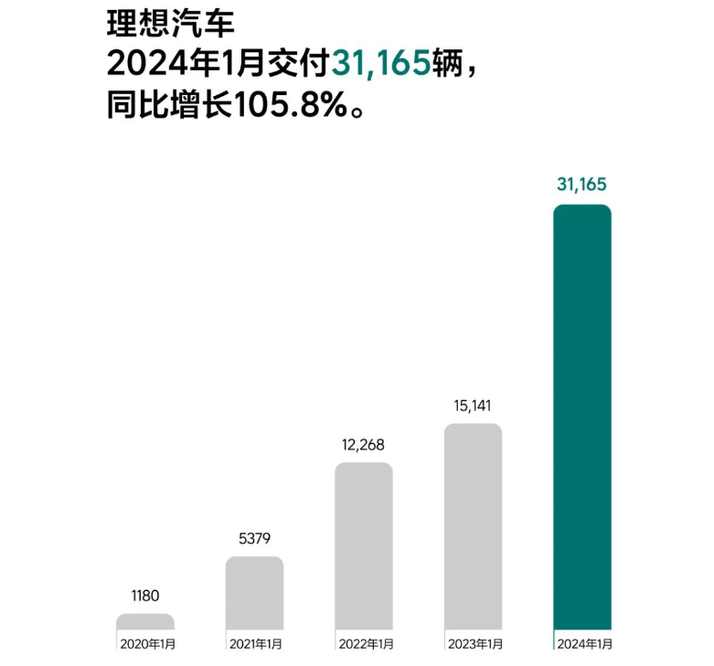 2月1日,理想汽车公布2024年1月交付数据。