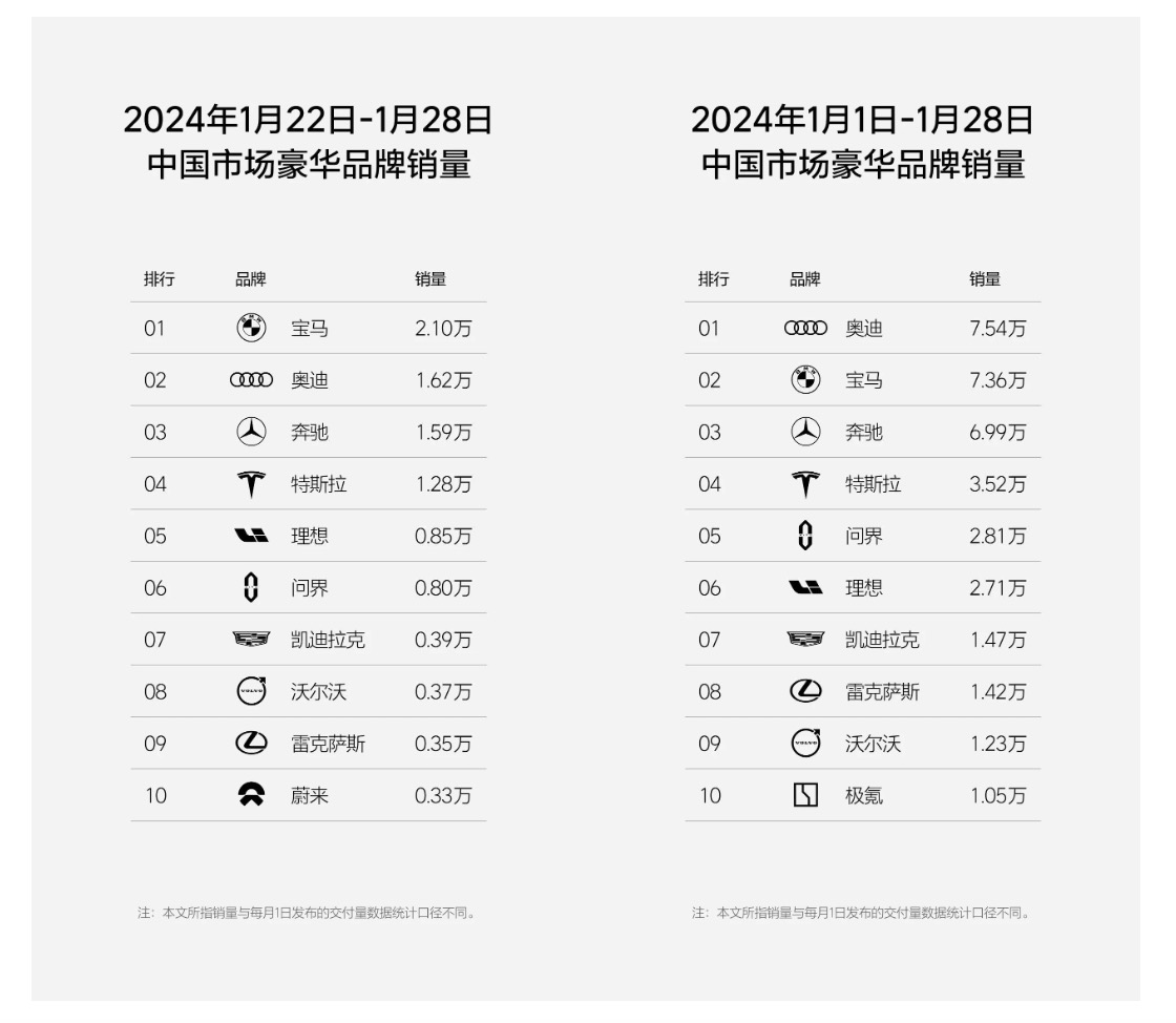 2024年以来,双方的竞争态势更显焦灼。开年前两周,问界力压理想,第三周起理想实现反超,如今1月累计销量较问界的差距已缩小至千辆。