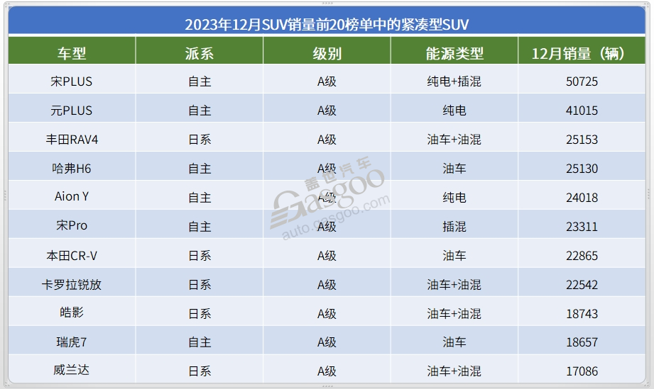 紧凑级SUV市场:自主新能源产品表现强势
