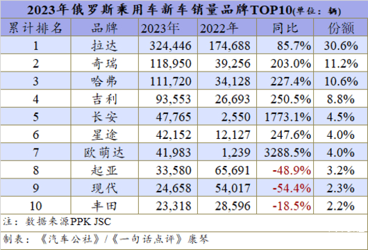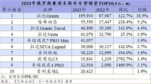 2023年俄罗斯乘用车市场的情况究竟如何,又是哪些自主品牌和车型发挥了巨大的推动作用呢?