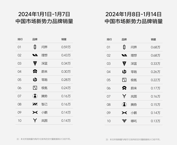 其效果便是,在今年1月前两周的销量数据榜中,问界超过理想,连续两周位居新势力品牌销量第一,这其中新M7功不可没。
